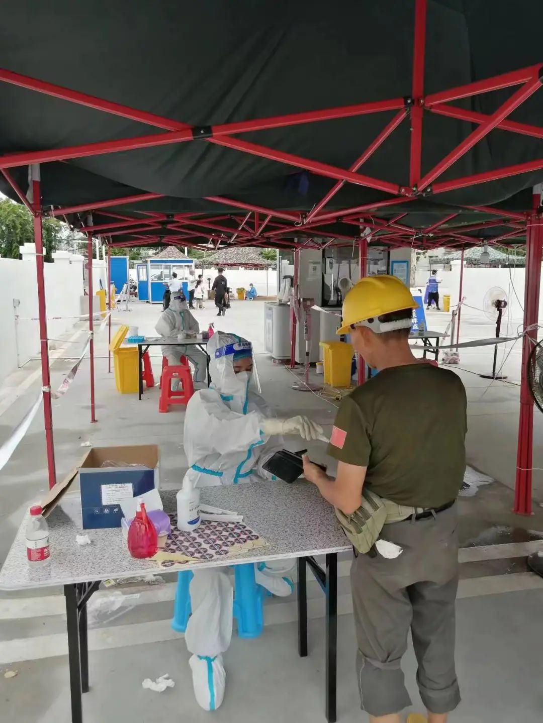 陳國(guó)芬為參加核酸檢測(cè)的市民錄入信息