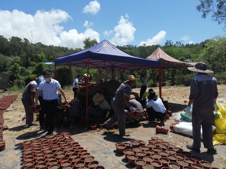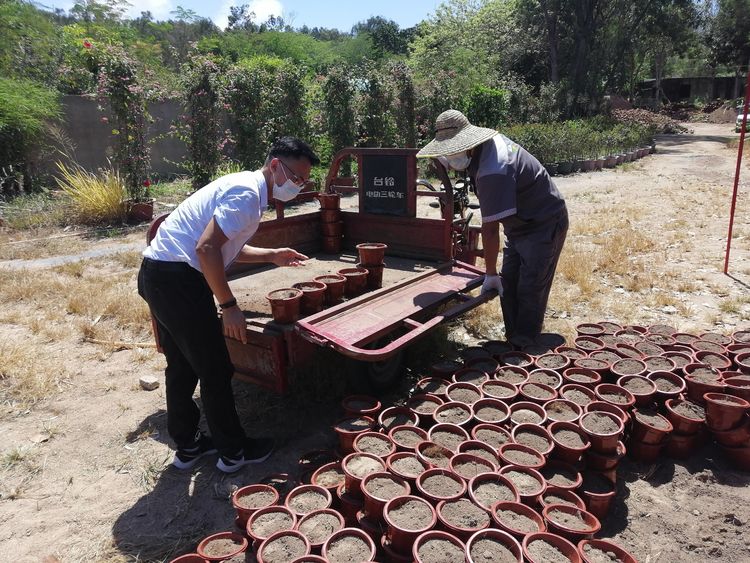 2021年5月10日上午,為迎接中國(guó)共產(chǎn)黨建黨一百周年的到來(lái),為豐富學(xué)黨歷專(zhuān)題學(xué)習(xí)活動(dòng)和創(chuàng)建5A景區(qū)的需要,經(jīng)了解支部所屬部門(mén)園林環(huán)衛(wèi)部為紀(jì)念建黨1百周年將利用32000盆草本花卉扮靚"七一"期間景區(qū)花境氛圍,為踐行公司黨委提出的節(jié)約成本就是創(chuàng)收的工作目標(biāo),發(fā)揮苗圃自產(chǎn)自供及配送基地的功能,因此需要在4天內(nèi)完成上盆等育苗前的準(zhǔn)備工作,由于時(shí)間緊迫任務(wù)重,加之苗圃員工人數(shù)有限,為了緩解人員短缺問(wèn)題,支部認(rèn)真謀劃活動(dòng)將群眾路線(xiàn)教育實(shí)踐活動(dòng)結(jié)合起來(lái)。把崗位貢獻(xiàn)與爭(zhēng)當(dāng)先鋒結(jié)合起來(lái),激發(fā)黨員以飽滿(mǎn)的精神狀態(tài)助推景區(qū)創(chuàng)五A級(jí)景區(qū)工作。充分發(fā)揮戰(zhàn)斗保壘作用,不斷提高凝聚力和戰(zhàn)斗力,組織黨員參加園林環(huán)衛(wèi)部苗圃基地開(kāi)展扮靚美化、亮化景區(qū),以實(shí)際行動(dòng)向建黨100周年獻(xiàn)禮!主題黨日活動(dòng)”。雖然頭頂炎炎烈日,汗流浹背但全體黨員你追我趕,全身心投入到備戰(zhàn)中協(xié)同園藝衛(wèi)生部苗圃組的員工突擊培土上盆,搬運(yùn)擺放苗壟等。經(jīng)過(guò)一個(gè)上午的突擊,在同志們的共同努下,共計(jì)培土上盆約25000個(gè)。