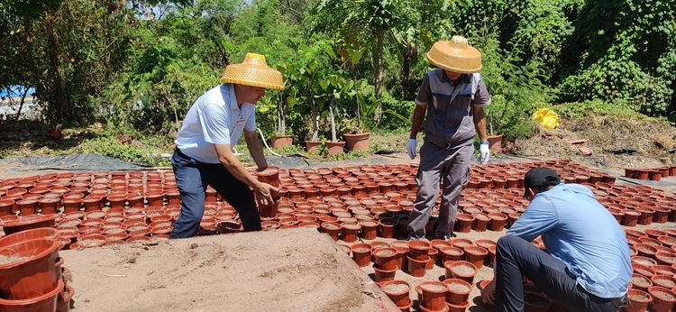2021年5月10日上午,為迎接中國(guó)共產(chǎn)黨建黨一百周年的到來(lái),為豐富學(xué)黨歷專(zhuān)題學(xué)習(xí)活動(dòng)和創(chuàng)建5A景區(qū)的需要,經(jīng)了解支部所屬部門(mén)園林環(huán)衛(wèi)部為紀(jì)念建黨1百周年將利用32000盆草本花卉扮靚"七一"期間景區(qū)花境氛圍,為踐行公司黨委提出的節(jié)約成本就是創(chuàng)收的工作目標(biāo),發(fā)揮苗圃自產(chǎn)自供及配送基地的功能,因此需要在4天內(nèi)完成上盆等育苗前的準(zhǔn)備工作,由于時(shí)間緊迫任務(wù)重,加之苗圃員工人數(shù)有限,為了緩解人員短缺問(wèn)題,支部認(rèn)真謀劃活動(dòng)將群眾路線教育實(shí)踐活動(dòng)結(jié)合起來(lái)。把崗位貢獻(xiàn)與爭(zhēng)當(dāng)先鋒結(jié)合起來(lái),激發(fā)黨員以飽滿的精神狀態(tài)助推景區(qū)創(chuàng)五A級(jí)景區(qū)工作。充分發(fā)揮戰(zhàn)斗保壘作用,不斷提高凝聚力和戰(zhàn)斗力,組織黨員參加園林環(huán)衛(wèi)部苗圃基地開(kāi)展扮靚美化、亮化景區(qū),以實(shí)際行動(dòng)向建黨100周年獻(xiàn)禮!主題黨日活動(dòng)”。雖然頭頂炎炎烈日,汗流浹背但全體黨員你追我趕,全身心投入到備戰(zhàn)中協(xié)同園藝衛(wèi)生部苗圃組的員工突擊培土上盆,搬運(yùn)擺放苗壟等。經(jīng)過(guò)一個(gè)上午的突擊,在同志們的共同努下,共計(jì)培土上盆約25000個(gè)。