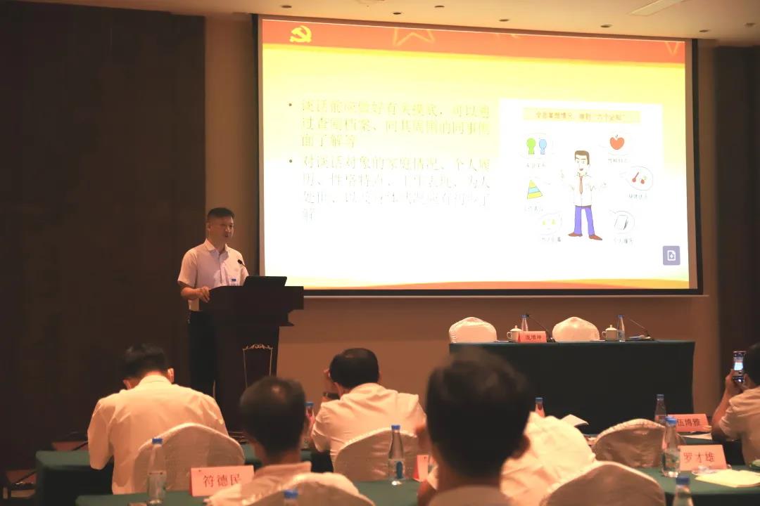 海口市直屬機關(guān)工委組織部主任龐增坤進行現(xiàn)場授課