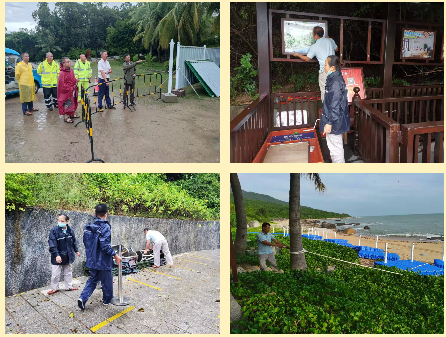 2021年10月13日上午,三亞旅文集團黨委書記、董事長鄭聰輝親赴天涯海角景區(qū)防臺一線指導工作,開展防臺防汛檢查、排查相關(guān)隱患。他要求,景區(qū)相關(guān)責任人員務必高度重視,做到責任落實到位、人員值守到位、隱患排查到位、預防措施到位、應急處置到位,全力保障市民游客及工作人員的人身財產(chǎn)安全。