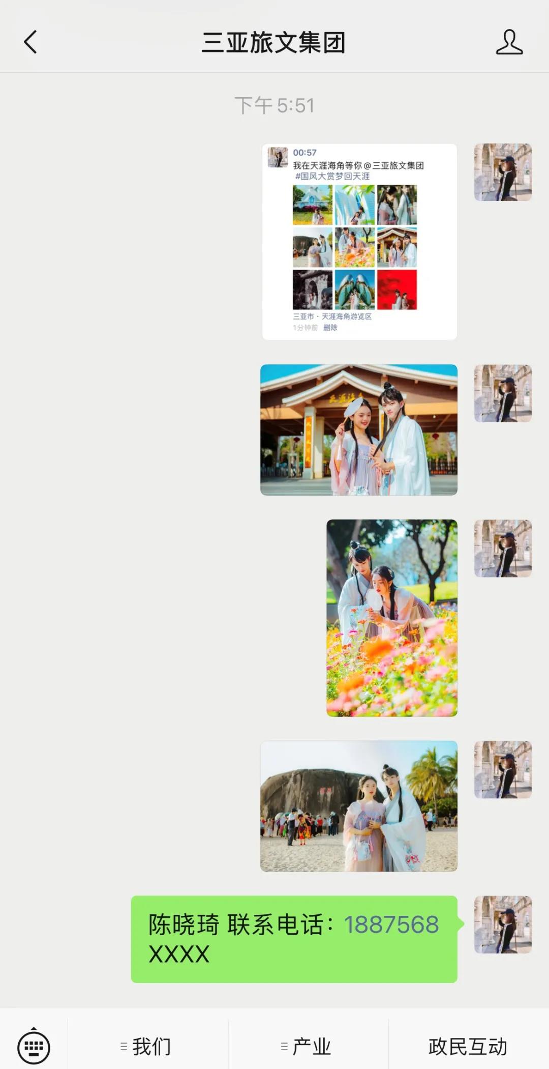 發(fā)布格式:發(fā)布九宮格照片,以及文字“我在XX(景區(qū)名稱)等你”,如“我在天涯海角等你”,并@三亞旅文集團(tuán),設(shè)置定位顯示景區(qū)位置。(照片內(nèi)容可以是漢服、也可以是旗袍,個人或集體合照都可