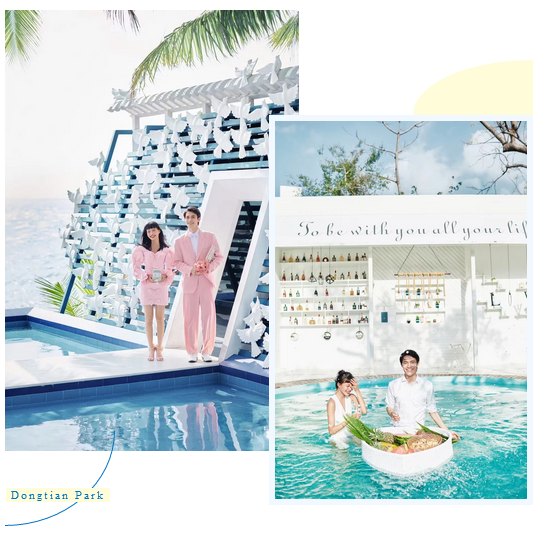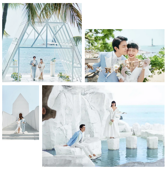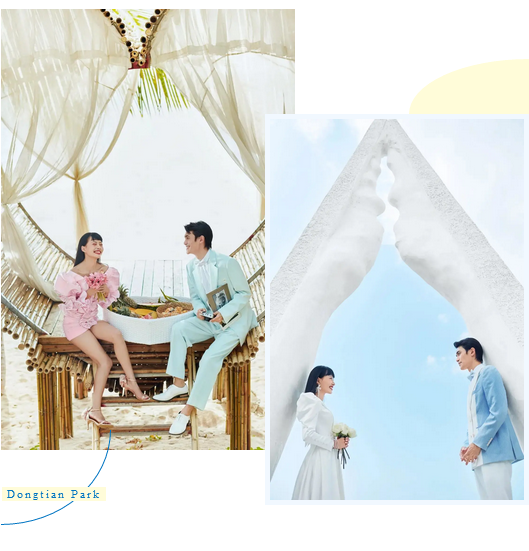 去年疫情期間,三亞旅游業(yè)遭受重創(chuàng),大小洞天卻化危為機,利用閉園空檔期,抓緊打造高端婚拍基地,布局產(chǎn)業(yè)升級。2020年2月,大小洞天拿出70畝土地,規(guī)劃了2萬平米的婚拍藍圖,馬不停蹄開始改造動作。短短幾個月,景區(qū)新建了南海福門、婚慶禮堂、網(wǎng)紅秋千、無邊泳池、瀑布假山、中國風背景墻等42個婚拍道具,集齊時下所有時尚元素。另外,為了打造室內(nèi)室外拍攝“一站式”服務(wù),景區(qū)還將原來的電瓶車候車站改為化妝室,可同時容納100對新人,合理改變原有設(shè)施功能,使其得到更有效的利用。硬件設(shè)施提升的同時,大小洞天還對標國際標準,引入了國內(nèi)先進婚拍基地管理團隊,提升管理服務(wù)軟實力。
