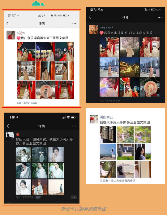 此次活動已接近尾聲,市民游客呼應(yīng)熱情依然不減。目前收到的投稿作品,每張都如畫卷一般驚艷。活動參與者請于4月6日前將本人姓名+聯(lián)系電話、參賽作品、朋友圈點贊截圖發(fā)送至三亞旅文集團(tuán)公眾號后臺。