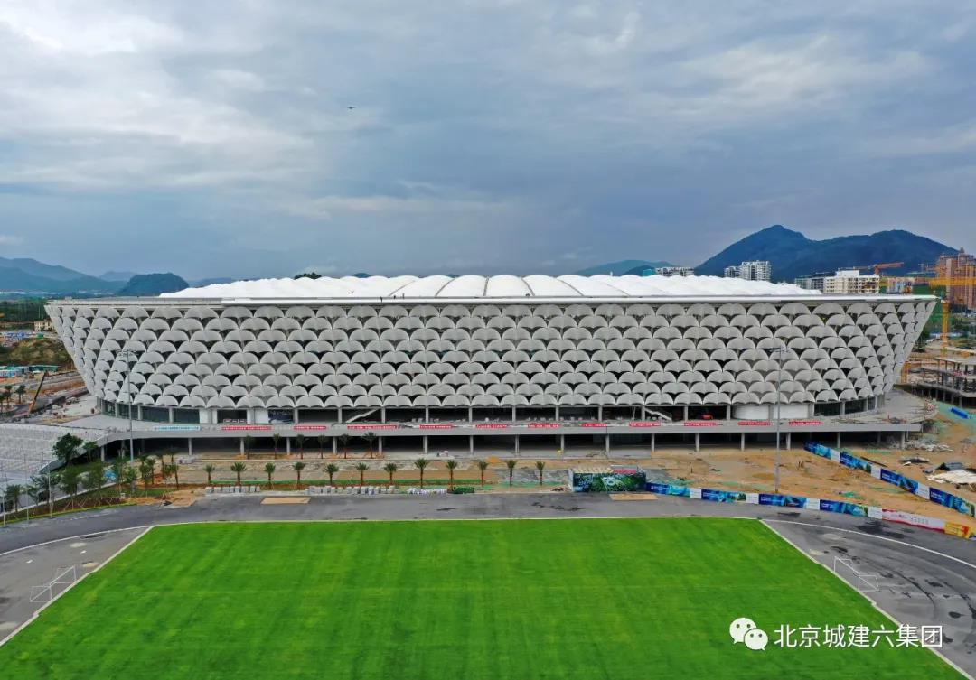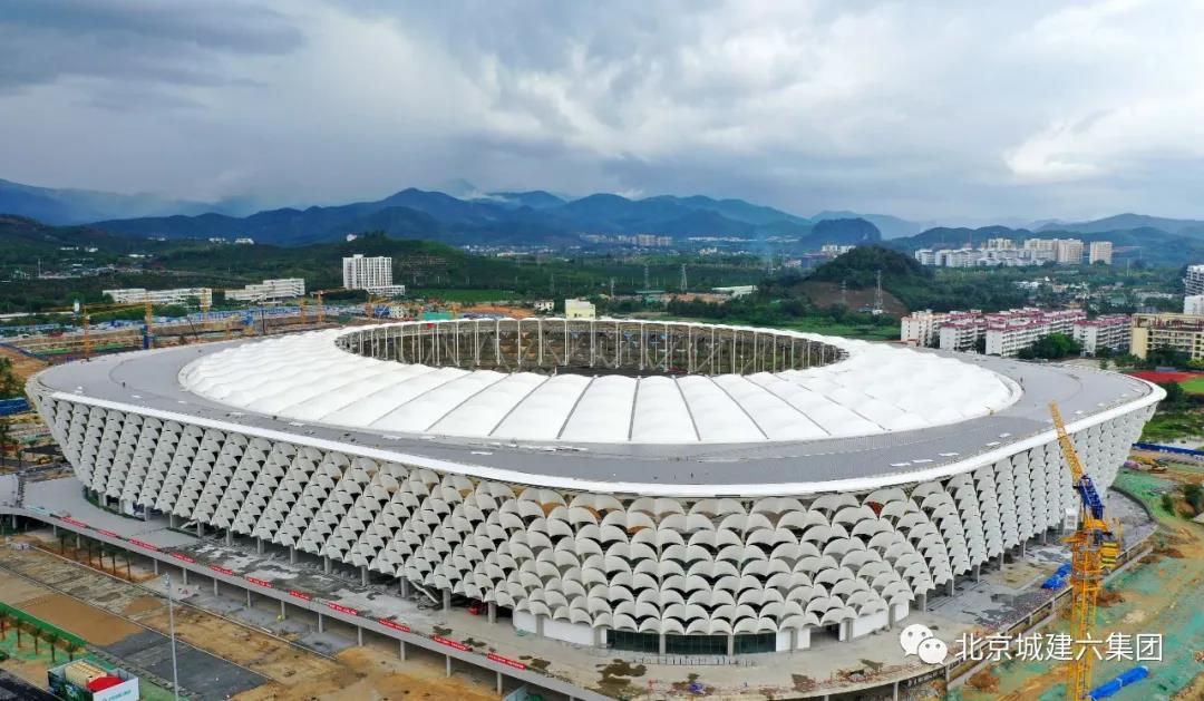 三亞市體育中心體育場建設(shè)目前進(jìn)入收尾階段。圖為體育場全景鳥瞰。