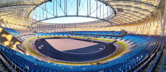 三亞國際體育產(chǎn)業(yè)園體育中心規(guī)劃建設(shè)的主體為“兩場兩館”(含地下停車場和配套商業(yè)空間),總占地面積約493.4畝,總建筑面積32.4萬㎡。其中體育場占地面積102畝,設(shè)4.5萬個座席,為甲級大型體育場,設(shè) 45間VIP 包廂,體育場綜合田徑場按 9 跑道標準400米設(shè)計,內(nèi)含一片國際標準尺寸天然草坪足球場;熱身場設(shè)1338個座席,包含一塊標準田徑場地和足球場地;體育館占地面積34.5畝,可容納1萬名觀眾,為甲級體育館,設(shè) 42個VIP 包廂;游泳館占地面積24畝,設(shè)3000個坐席,為甲級游泳館。