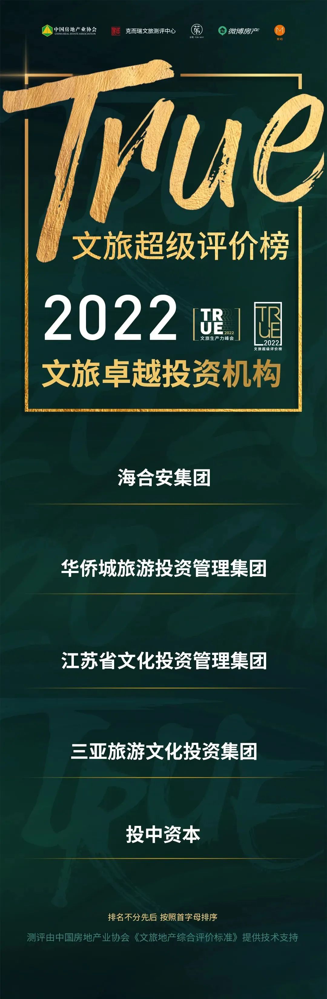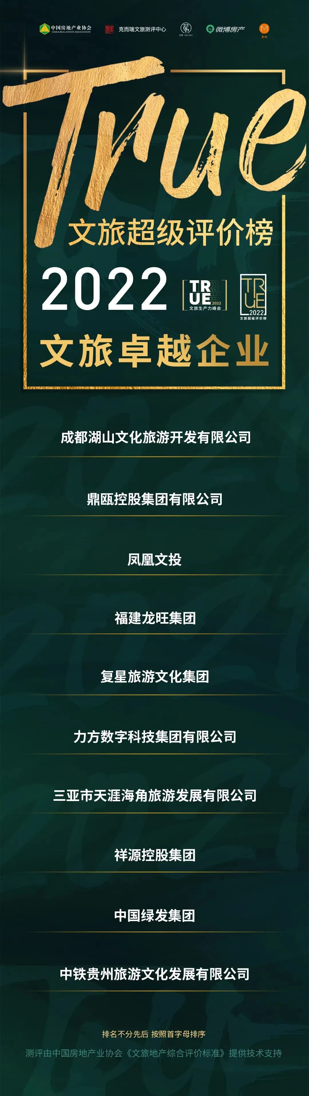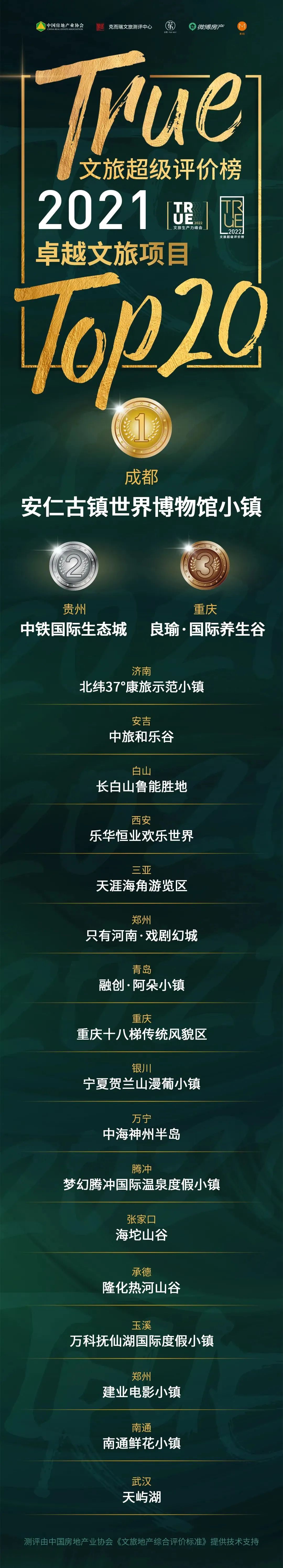 TRUE文旅超級評價(jià)榜(Tourism Real-estate Ultra Evaluation)由克而瑞文旅測評中心權(quán)威發(fā)布(克而瑞文旅測評中心由中國房地產(chǎn)業(yè)協(xié)會(huì)商業(yè)和文化旅游地產(chǎn)委員會(huì)、易居克而瑞、克而瑞樂葦、微博房產(chǎn)共同組成)。