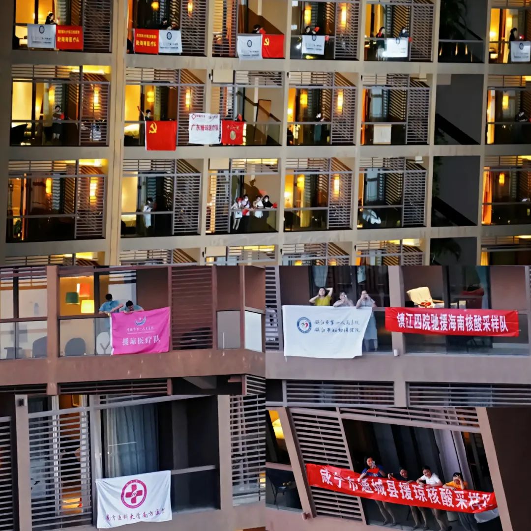 當晚,在一聲聲歡呼,一句句“海南加油、三亞加油”聲中,三亞灣紅樹林度假世界各個樓棟的陽臺亮起了燈光,與支援三亞醫(yī)療隊的醫(yī)護人員打開的手機燈光交相輝映成了光的海洋。