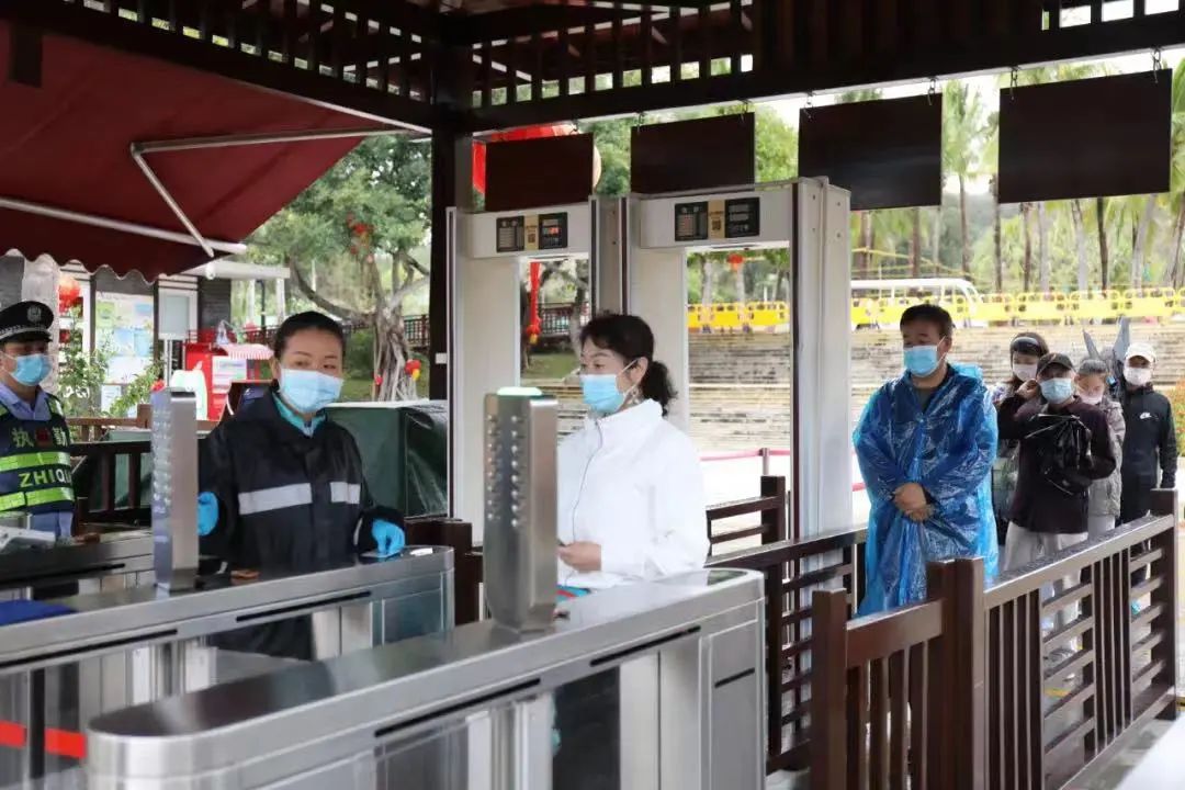 為了讓大家能安心游玩,景區(qū)工作人員將為進入景區(qū)的游客進行體溫監(jiān)測以及引導游客掃碼檢票。并督促游客執(zhí)行好“一米線”、佩戴口罩等措施,嚴格落實人流引導和疏導措施,防止人員瞬時聚集。
