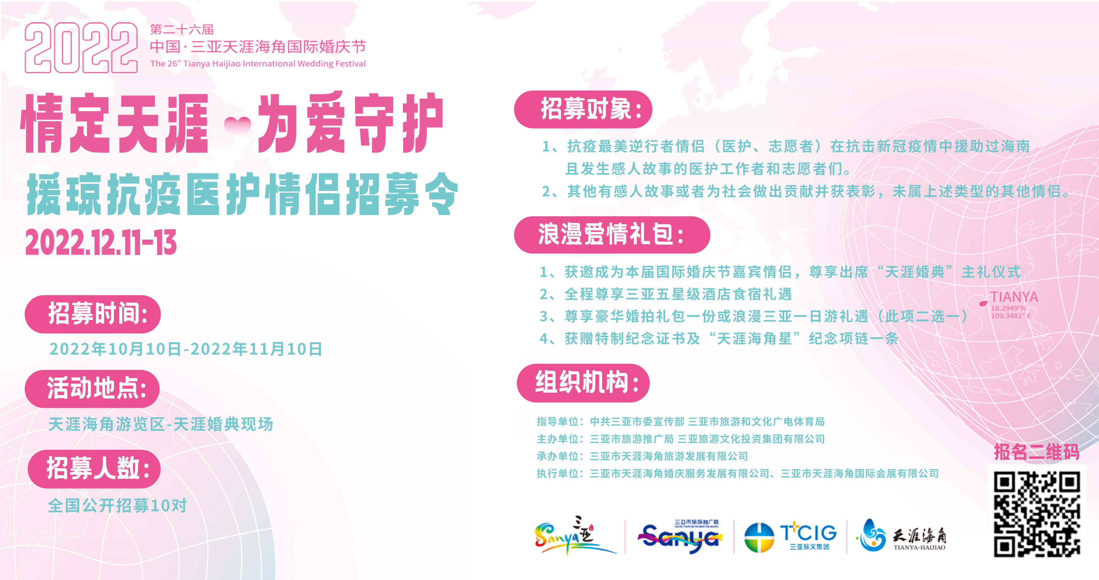 2022第26屆中國·三亞天涯海角國際婚慶節(jié)正式啟動,援瓊抗疫醫(yī)護情侶招募令發(fā)布