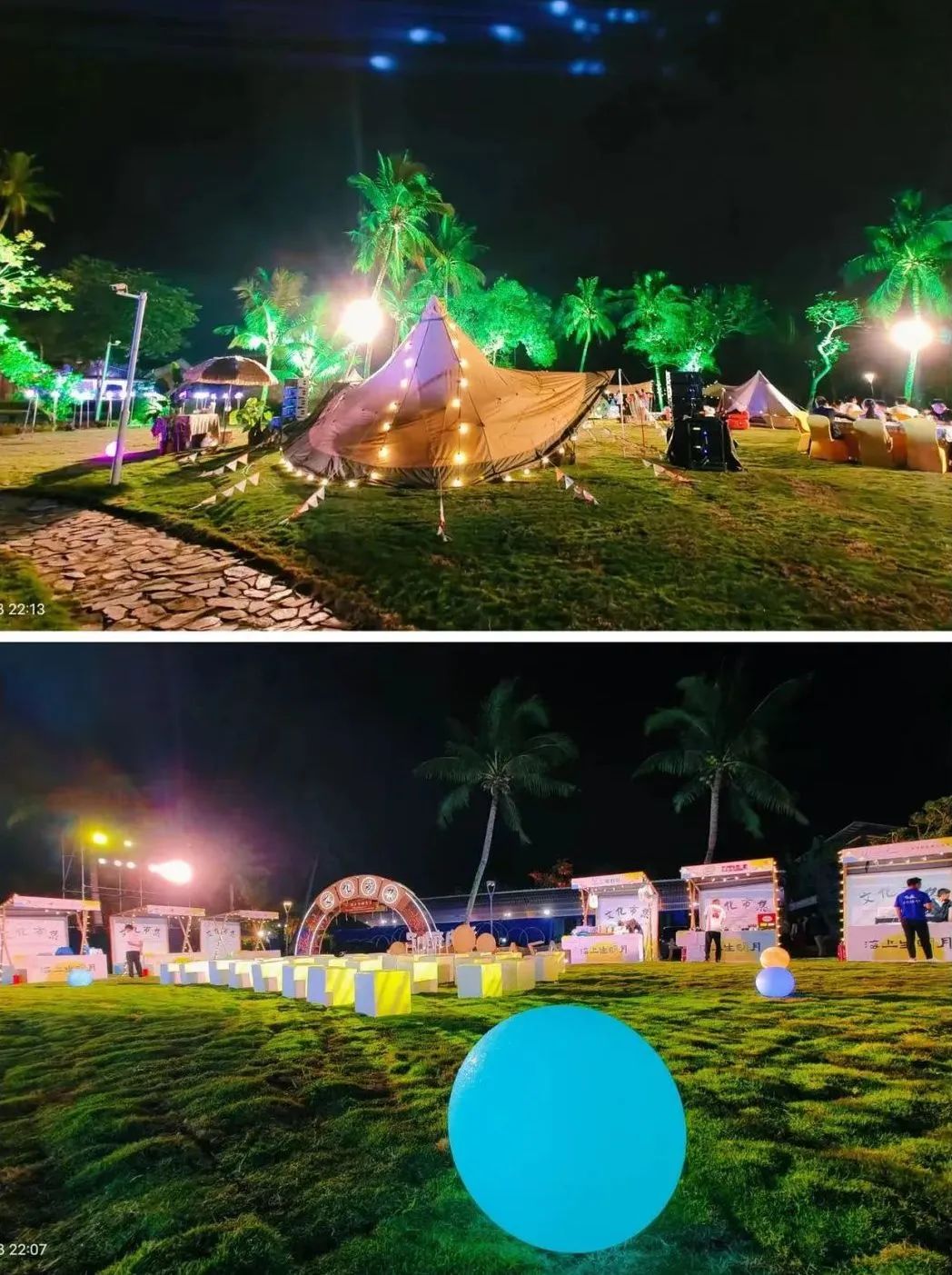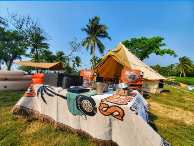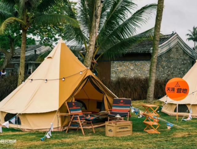 前往天涯會客廳,還有海南極玩地球文旅發(fā)展有限公司所帶來的露營主題帳篷,在這里喝喝咖啡,聊聊天,感受北緯18度的熱情。