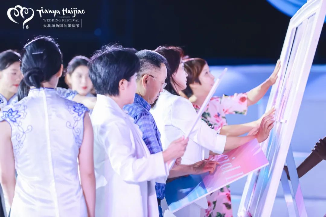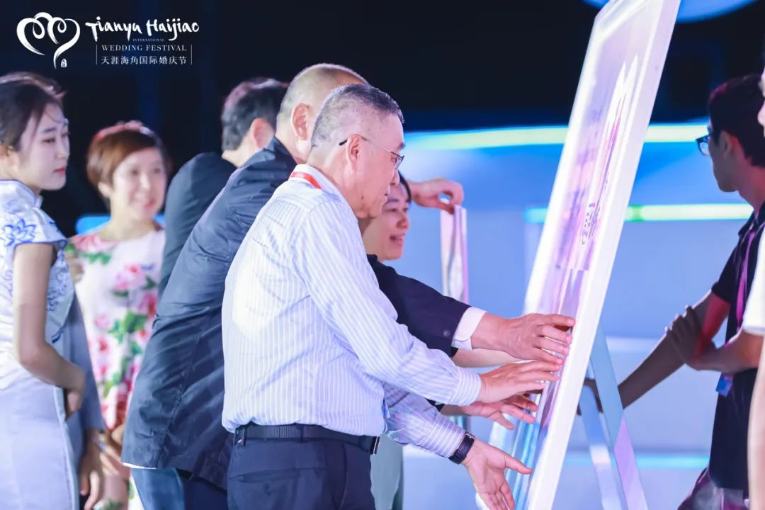 三亞市委常委、常務(wù)副市長盛勇軍,海南省旅文廳產(chǎn)業(yè)發(fā)展處三級調(diào)研員馮飛,三亞市委宣傳部副部長王筱卉,三亞市國資委專職副書記陳朝江,三亞旅游文化投資集團(tuán)有限公司黨委副書記、總經(jīng)理梅開志,三亞市商務(wù)局副局長楊春,三亞市旅文局副局長楊玉婷,三亞市旅游發(fā)展局黨委書記吳小琳,天涯區(qū)副區(qū)長李麗英,婚道婚嫁產(chǎn)業(yè)研究院院長史康寧,中國傳統(tǒng)文化促進(jìn)會結(jié)婚產(chǎn)業(yè)工作委員會主任曹仲華,海南省婚慶服務(wù)行業(yè)協(xié)會會長許偉,中央電視臺二套財經(jīng)頻道特約設(shè)計師、三亞目的地婚禮全國推廣大使徐丹共同上臺拼好啟動拼圖,揭開本屆天涯海角國際婚慶節(jié)浪漫序幕。