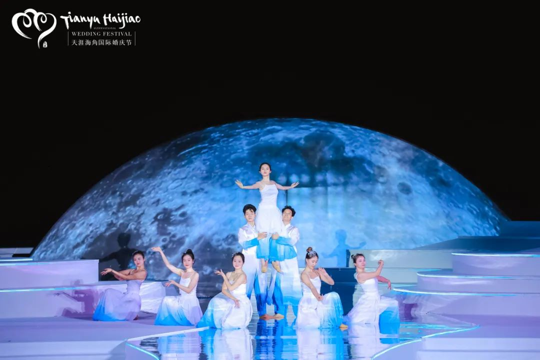 當(dāng)幸福感滿滿的天涯婚典婚禮儀式結(jié)束后,一曲舞蹈《天涯共此時》為天涯海角婚慶節(jié)開幕式畫上唯美的句號。