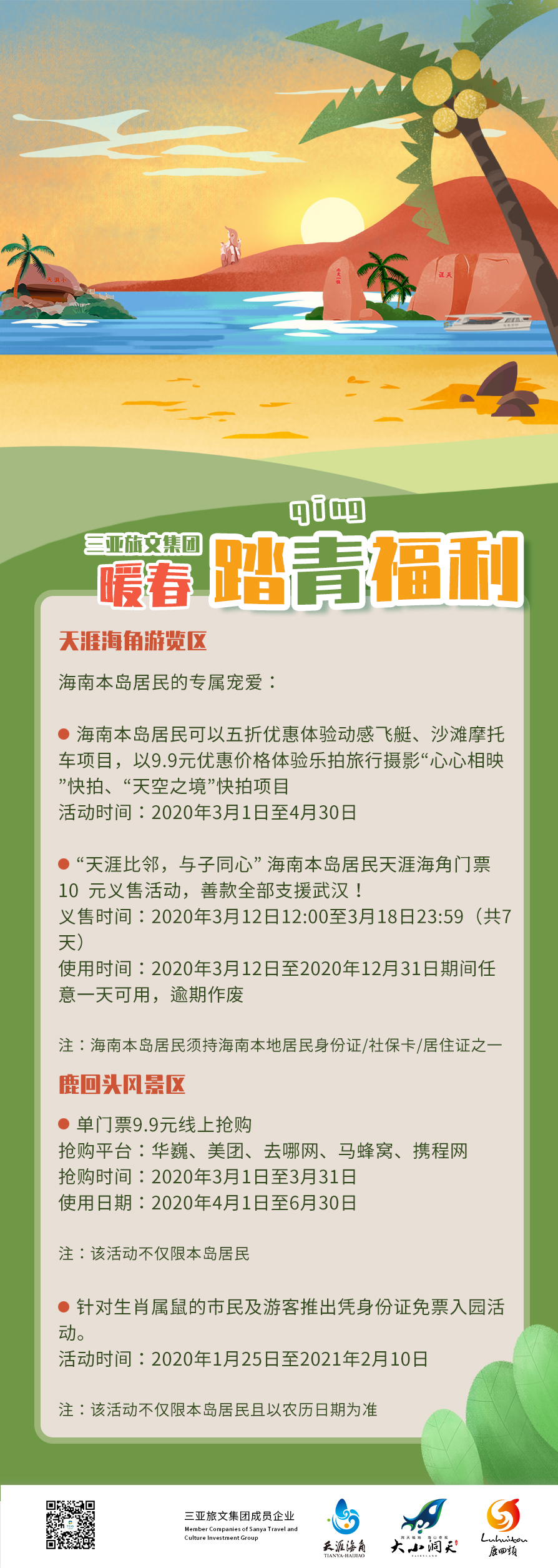 2. “天涯比鄰,與子同心” 海南本島居民天涯海角門票10元義售活動,善款全部支援武漢!