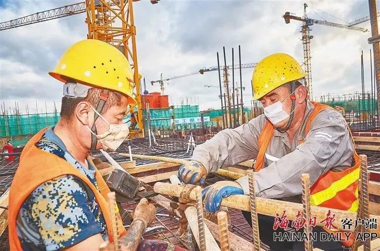 △2月14日,第六屆三亞亞洲沙灘運動會亞沙村A區(qū)建筑工地上,工人在進行模板安裝加固工作。