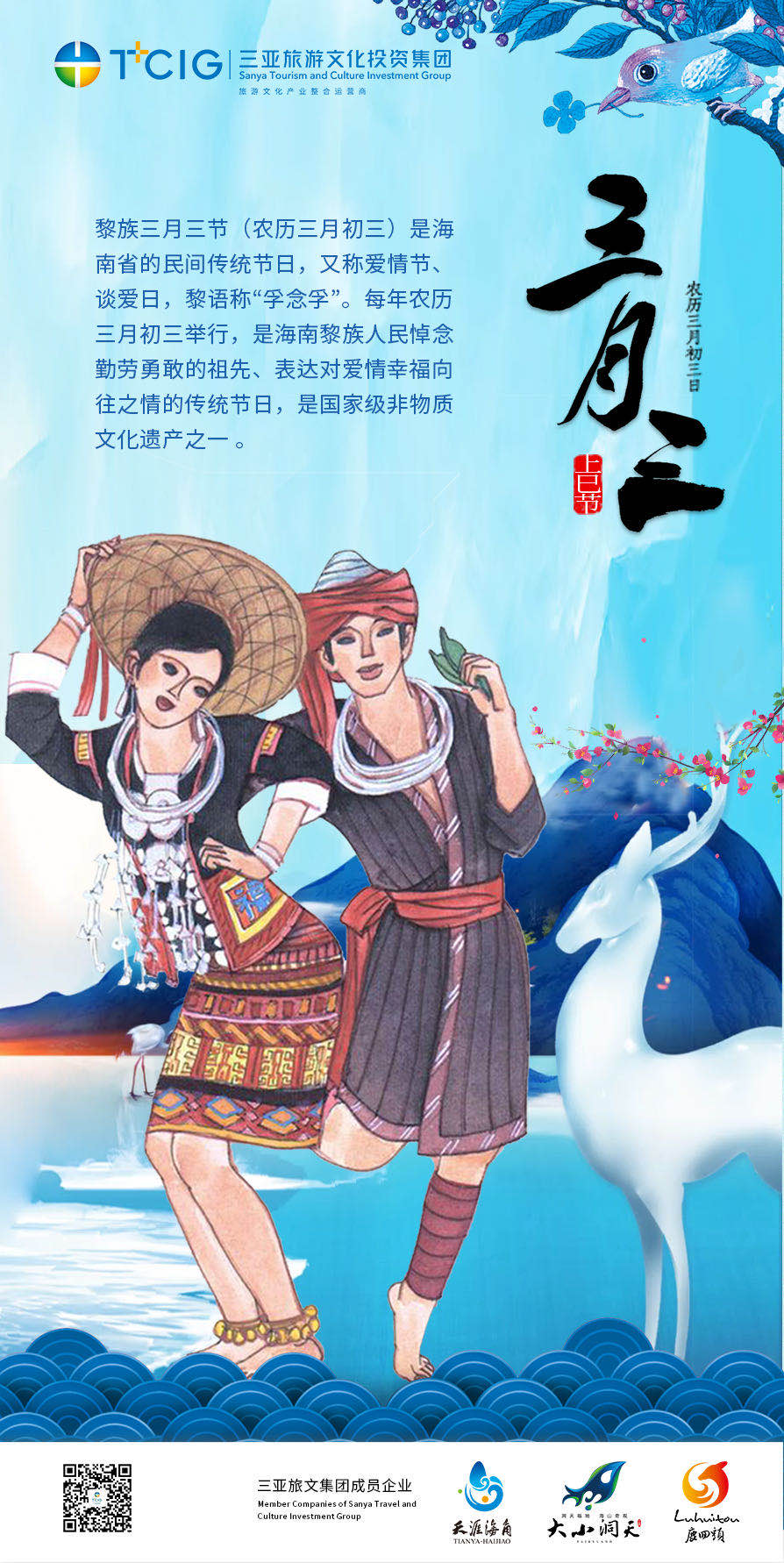 三月三節(jié)(農(nóng)歷三月初三),海南省的民間傳統(tǒng)節(jié)日,又稱愛情節(jié)、放假日。節(jié)日當(dāng)天,鹿回頭風(fēng)景區(qū)推出:海南省黎、苗族同胞,憑身份證免門票入園活動(dòng)。