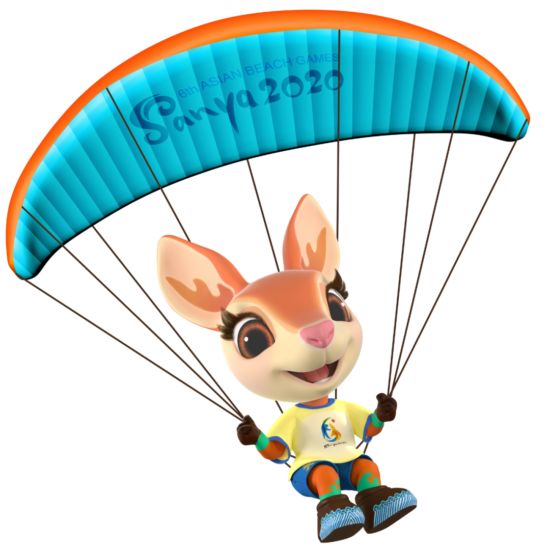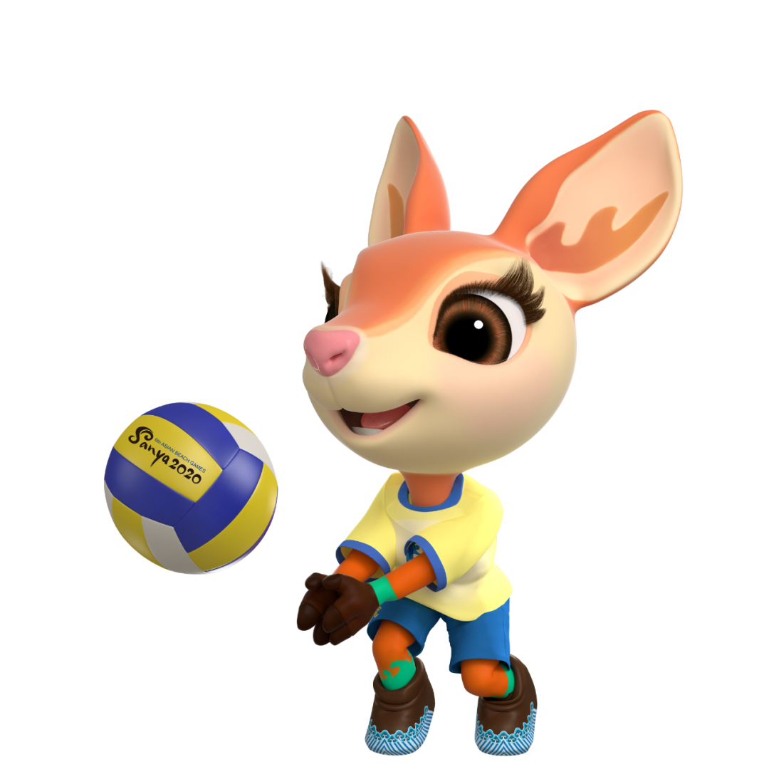 在吉祥物運(yùn)動項(xiàng)目造型中,“亞亞”時(shí)而全神貫注、英姿颯爽,時(shí)而悠然自得、神采飛揚(yáng),用靈動的雙眸、熱情的笑臉、充滿活力的運(yùn)動姿態(tài),表達(dá)“亞亞”熱愛沙灘與水上運(yùn)動、努力爭奪榮譽(yù)的態(tài)度。