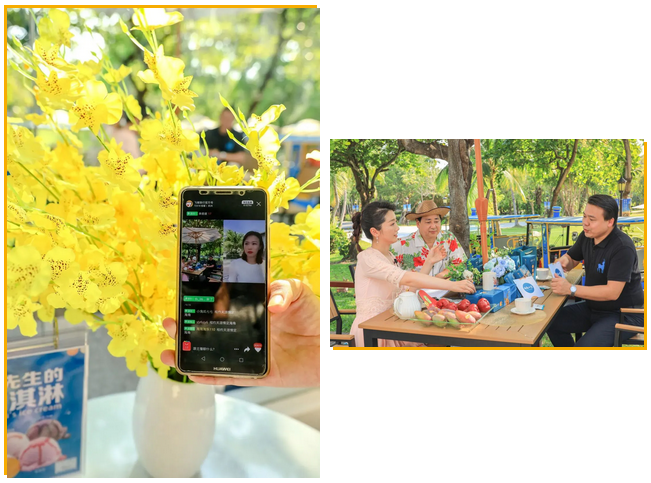 15點(diǎn)直播準(zhǔn)時(shí)開始,在天涯海角的“心心相映”愛情主題雕塑旁,老唐開始了自己的直播首秀。