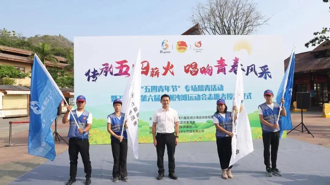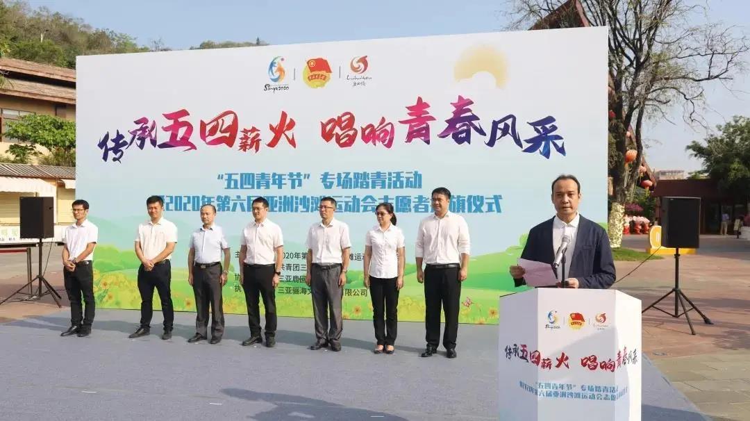 4月28日上午,2020年第六屆亞洲沙灘運動會(以下簡稱“亞沙會”)組委會與共青團(tuán)三亞市委在鹿回頭風(fēng)景區(qū)聯(lián)合舉行首家“亞沙會愛心志愿者之家”授牌儀式暨“五四青年節(jié)”專場踏青活動。亞沙委工作委員會副秘書長、三亞市政府副秘書長葉凱中主持儀式。