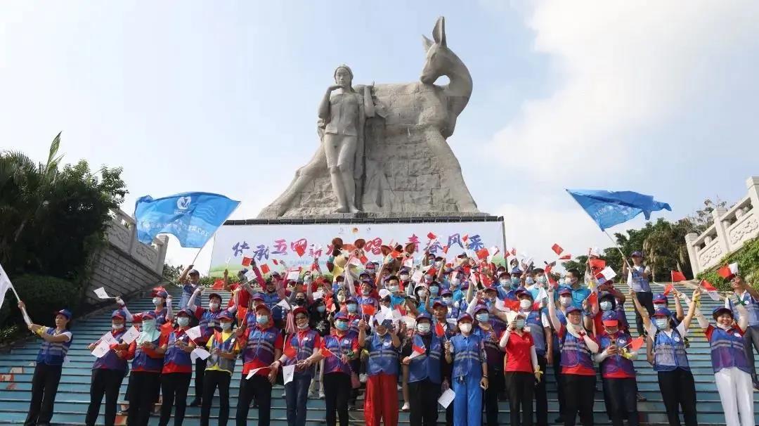 在授旗、授牌后,亞沙會組委會副秘書長、亞沙委執(zhí)行副主任、三亞市副市長周俊宣布“五四青年節(jié)”專場踏青活動正式啟動。全體青年代表沿著鹿回頭景區(qū)內(nèi)環(huán)山踏青,在鹿回頭雕像下,他們合唱《五月的花?!?,并合影留念。