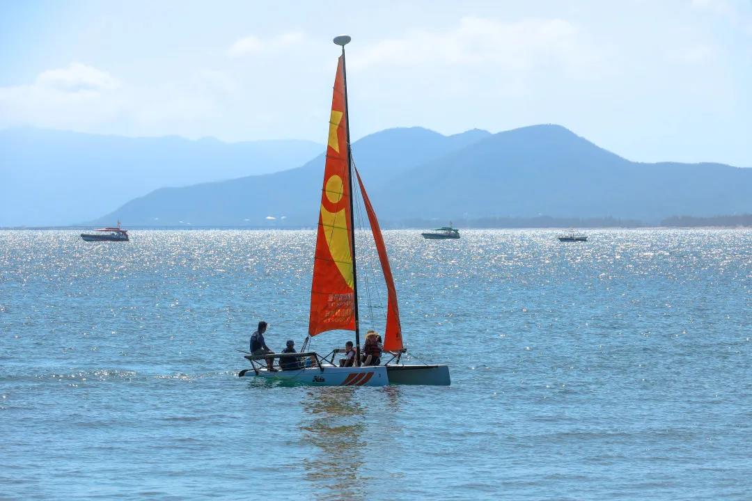 “天涯海角久負(fù)盛名,從今天的真實(shí)體驗(yàn)來說景區(qū)風(fēng)景美、服務(wù)好、項(xiàng)目豐富、防疫管控嚴(yán)格,感受非常不錯,值得再來?!眮碜灾貞c的劉川娥在與男友體驗(yàn)完帆船出海之后,又計劃著前往碼頭體驗(yàn)動感飛艇的速度與激情,體驗(yàn)乘風(fēng)破浪的快感。