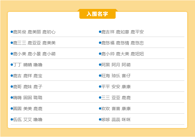 鹿回頭“吉祥三寶”征名大賽邀您投票!