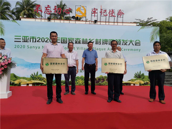 三亞新聞網(wǎng)6月4日消息(三亞傳媒融媒體記者 李少云 袁燕)森林鄉(xiāng)村,指的是鄉(xiāng)村自然生態(tài)風(fēng)貌保存完好、鄉(xiāng)土田園特色突出、森林氛圍濃郁、森林功能效益顯著、涉林產(chǎn)業(yè)發(fā)展良好、人居環(huán)境整潔、保護(hù)管理有效的生態(tài)宜居鄉(xiāng)村。6月4日上午,三亞2020年“國(guó)家森林鄉(xiāng)村”牌匾頒發(fā)大會(huì)在三亞市天涯區(qū)文門村舉行,大茅、中廖、抱安、那會(huì)、抱前、臺(tái)樓、文門、青塘、北山等9個(gè)于2019年先后兩批入選“國(guó)家森林鄉(xiāng)村”的三亞鄉(xiāng)村,正式掛上了“國(guó)字”牌匾。