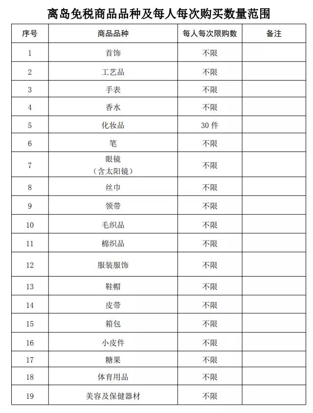 附件:離島免稅商品品種及每人每次購(gòu)買數(shù)量范圍