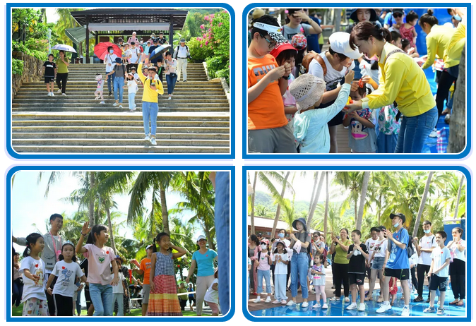當天上午10:30,三亞中心醫(yī)院20余組抗疫醫(yī)護人員家庭乘景區(qū)大巴從市區(qū)抵達景區(qū)。在景區(qū)的南海福門舉行了合影留念以及研學活動開營儀式。