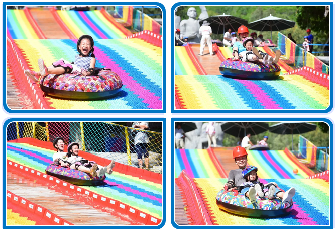 下午15:00,依舊陽光明媚,炎熱的天氣絲毫無法阻擋大家對于彩虹滑道的刺激與快樂的向往。