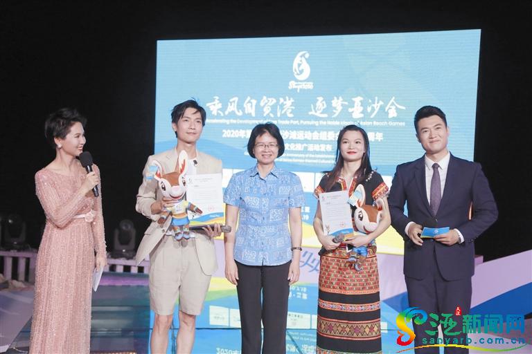 三亞新聞網(wǎng)7月20日消息(三亞傳媒融媒體記者 吳合慶 張慧臏)“成為亞沙會(huì)火炬手,既幸運(yùn),又倍感光榮?!?月19日,在2020年第六屆亞洲沙灘運(yùn)動(dòng)會(huì)(以下簡(jiǎn)稱(chēng)“亞沙會(huì)”)組委會(huì)成立一周年暨系列文化推廣活動(dòng)上,亞沙會(huì)組委會(huì)副主席、海南省副省長(zhǎng)苻彩香向亞沙會(huì)宣傳推廣歌曲演唱歌手陳楚生、蘇運(yùn)瑩頒發(fā)了亞沙會(huì)火炬手邀請(qǐng)函。
