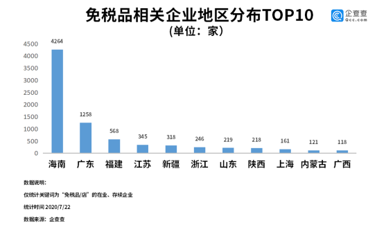 企查查數(shù)據(jù)顯示,目前我國與免稅相關(guān)的企業(yè)共有8623家,其中上半年新增企業(yè)達到3871家,同比大漲1377.5%。背靠政策優(yōu)勢的海南省相關(guān)企業(yè)數(shù)量達到4264家,占據(jù)全國總量的49.4%,排名2-4名的分別是廣東、福建、江蘇等東南沿海省份。