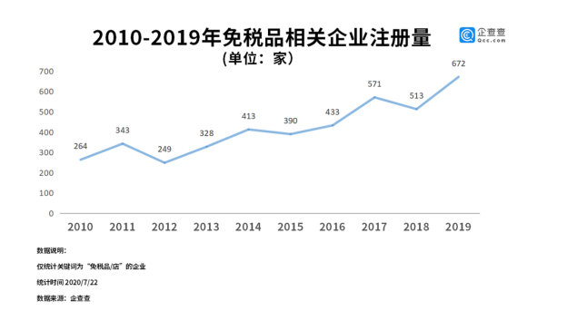 從近十年的免稅行業(yè)方展?fàn)顩r來看,過去十年,相關(guān)企業(yè)年注冊量呈波動增長趨勢。2019年注冊量為672家,同比增長31%。