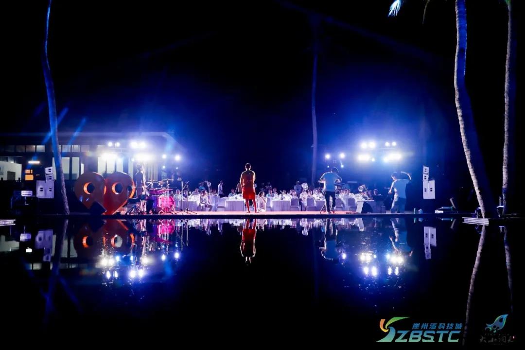 最酷炫的舞臺給最浪漫的你~主辦方在大小洞天旅游區(qū)內的南海福門前搭建起活動舞臺,面朝大海,黑夜中亮起深藍色的聚光燈,翻涌的海浪聲中似乎還夾雜著嘉賓們的心跳聲~