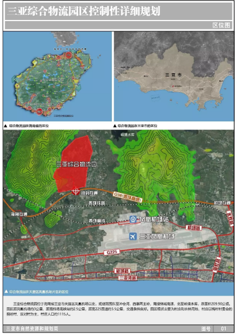 根據(jù)規(guī)劃,三亞綜合物流園位于三亞市天涯區(qū)鳳凰機場以北,規(guī)劃范圍西至兩王嶺,東至沖會河,南至繞城高速,北至嶺渣水庫,面積約209.9公頃。該物流園緊扣海南自由貿(mào)易港和三亞空港型國家物流樞紐承載城市建設要求,依托毗鄰鳳凰機場和繞城高速的區(qū)位優(yōu)勢,重點發(fā)展自貿(mào)物流、空港物流、高附加值城市配套物流、高附加值和無污染的高端制造加工業(yè),打造三亞市重要物流節(jié)點。