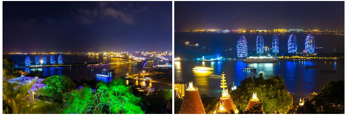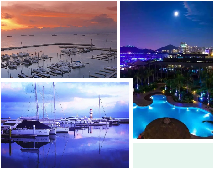 入夜,各色燈光把三亞的夜空