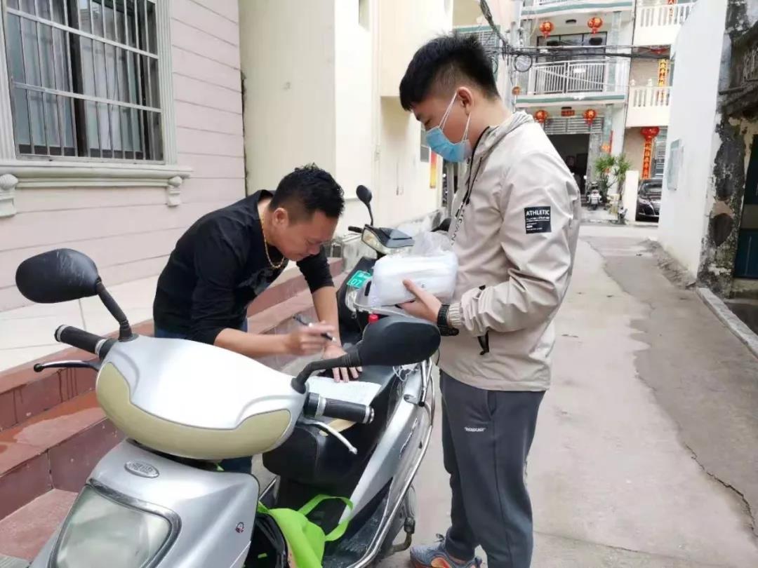 1月26日,天涯區(qū)羊欄村第一網(wǎng)格員黎祖堅(jiān)騎著一輛電動車走街串戶,做好排查登記,為村民派發(fā)口罩。
