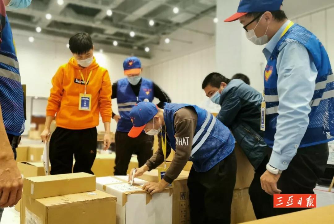 2月1日,在三亞市防疫物流倉庫,三亞繁星義工社的青年志愿者正在搬運(yùn)并協(xié)助分配各種醫(yī)用物資。
