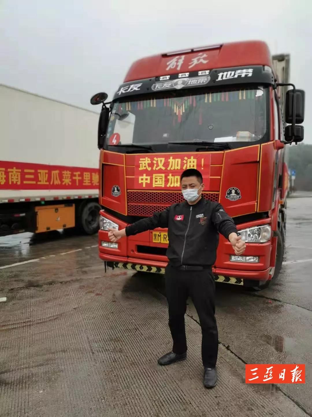2月1日上午,一組大貨車車隊(duì)滿載著三亞百余噸瓜果蔬菜啟程馳援武漢。這個車隊(duì)的11位貨車司機(jī)則是瞞著家人前往武漢的。