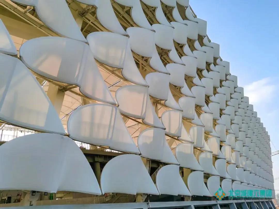 據(jù)悉,立面膜結(jié)構(gòu)體系共有972個“白鷺翅膀”,彼此首尾相連組成整體,像一群振翅欲飛的“白鷺”環(huán)繞在體育場周圍,賦予了這座鋼筋水泥建筑以靈性,成為了輕盈、靈動的“鋼鐵白鷺”。從外觀來看,“鋼鐵白鷺”的造型簡潔大方,讓人感覺施工應(yīng)該很簡單。但是要想讓972個“白鷺翅膀”合理地“飛”上去并連成一片整體,卻是非常復雜的一項工程。