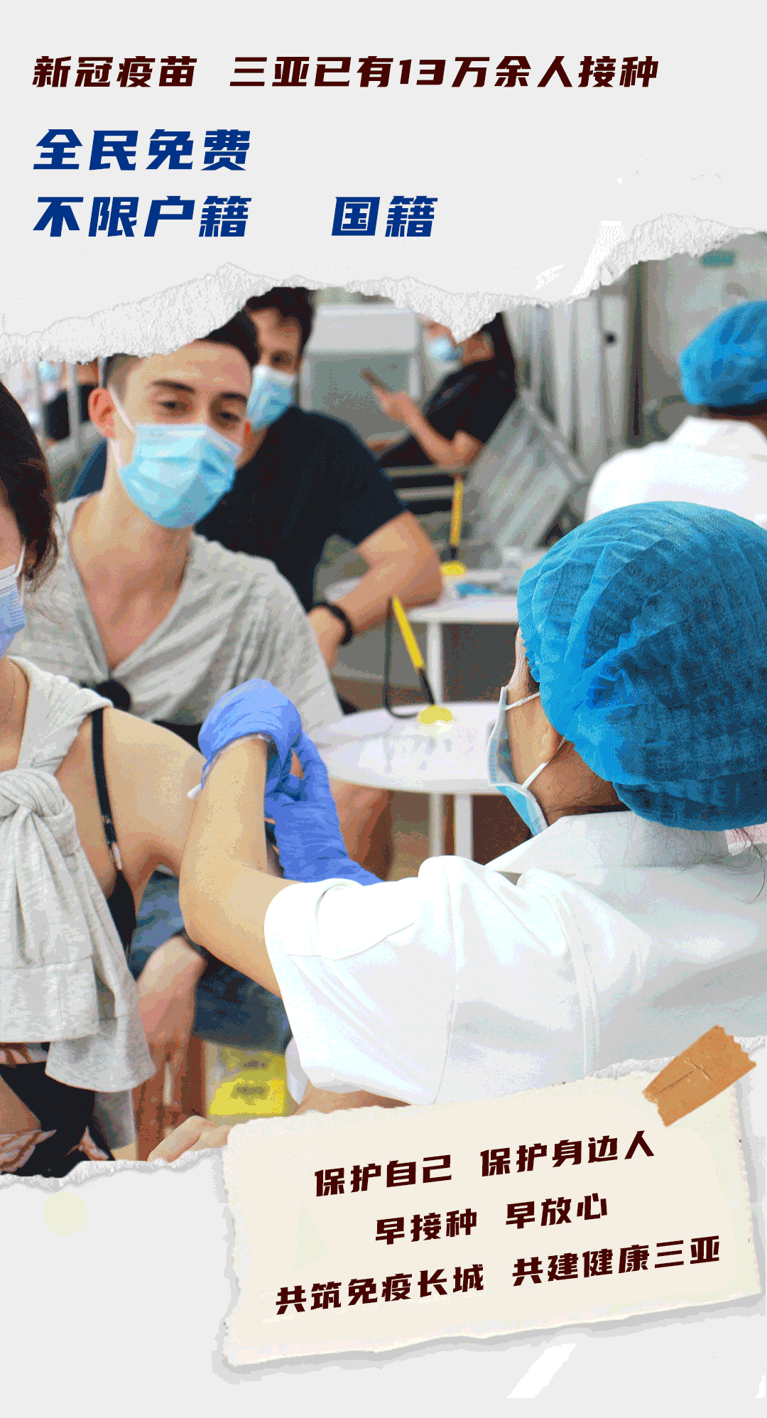 全民免費(fèi),不限戶籍、國籍。目前,三亞市本階段免費(fèi)新冠疫苗接種工作正有序進(jìn)行,在三亞生活、工作的人員接種新冠疫苗的熱情越來越高。3月1日至16日22時(shí),本市共有13.8萬人完成本階段第一針次接種。