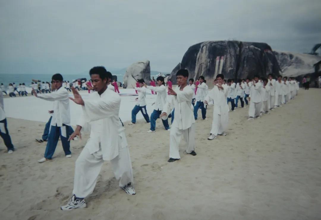 2001年首屆世界太極拳健康大會在三亞天涯海角舉行,那個身著一身白衣、剛柔并濟的太極拳,手腳互相配合著,萬人集齊,向著同一個目標前進。首屆世界太極拳活動舉辦的龐大,現(xiàn)如今,憶起當年,場面依然清晰印在腦海里。透過照片看時光流轉,在那段流金歲月中,心中唯有理想,不可辜負,致敬永不褪色的芳華歲月!